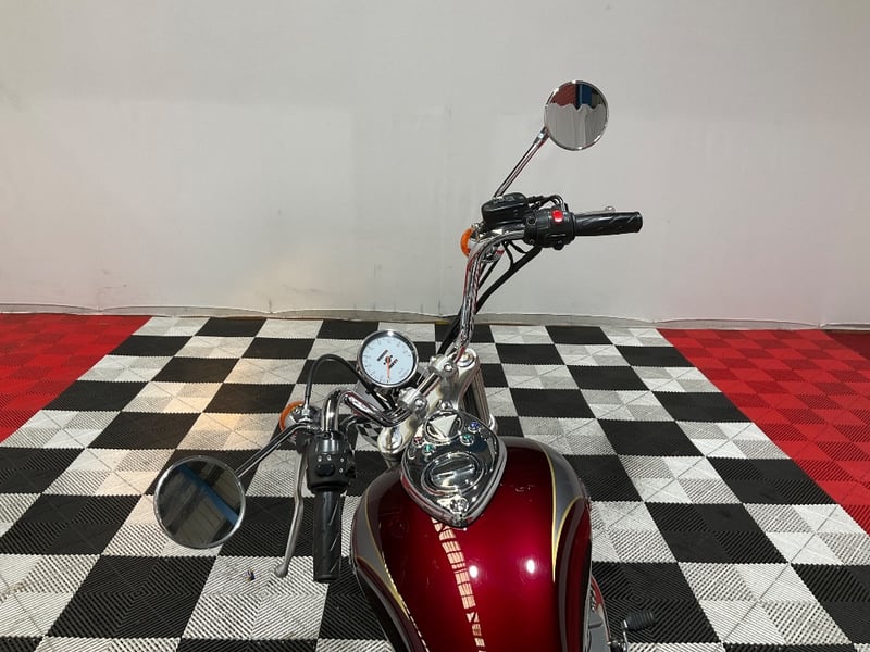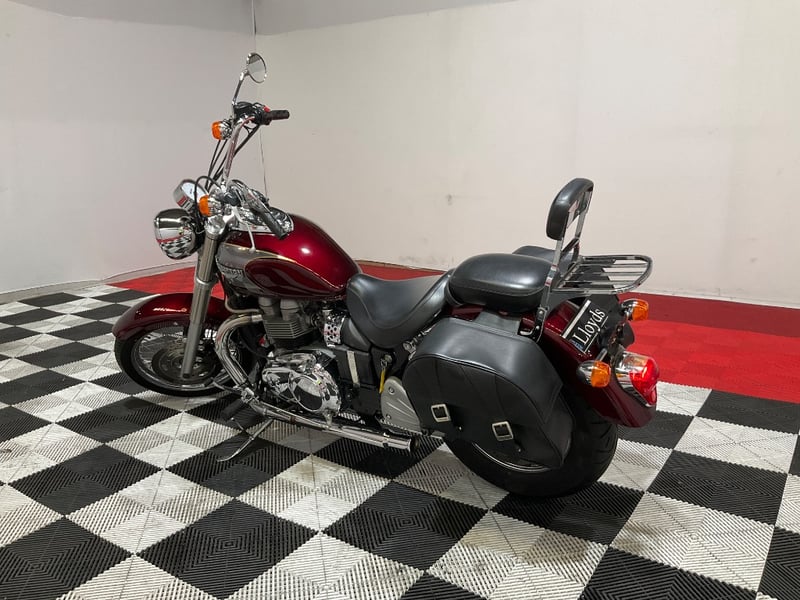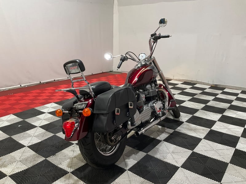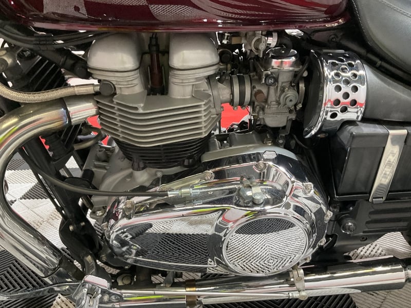 Description: Good condition bike, twin cyclinder, twin carb, side saddles, back rest with rack, chrome straight pipes sound great, comes with original pipes and original handle bars, small dint in fuel tank