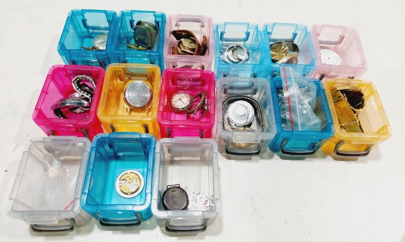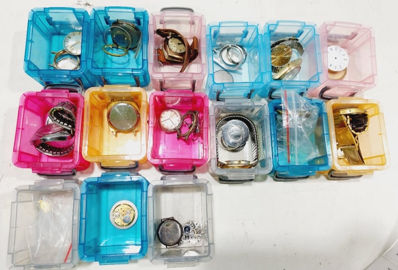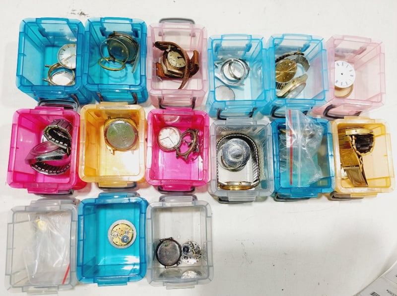 Assorted watch parts.