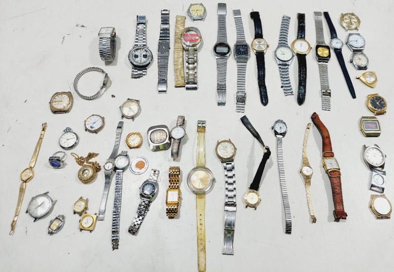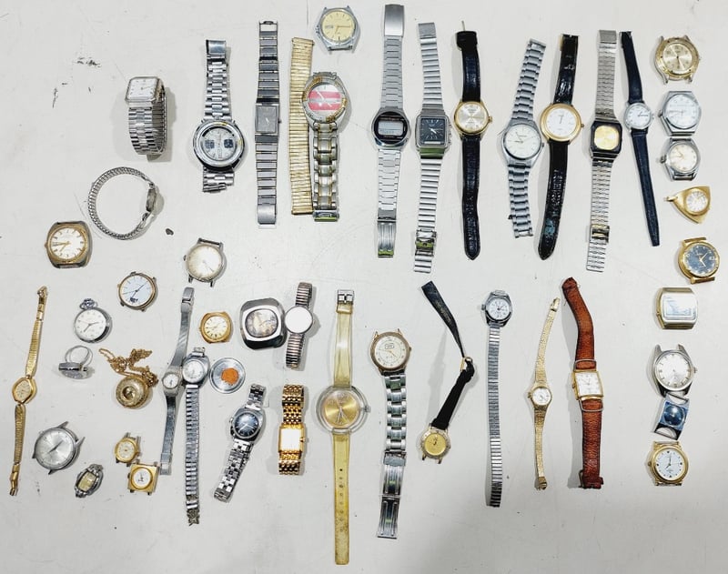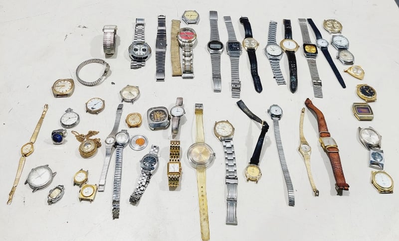 Assorted wristwatches in a variety of styles.