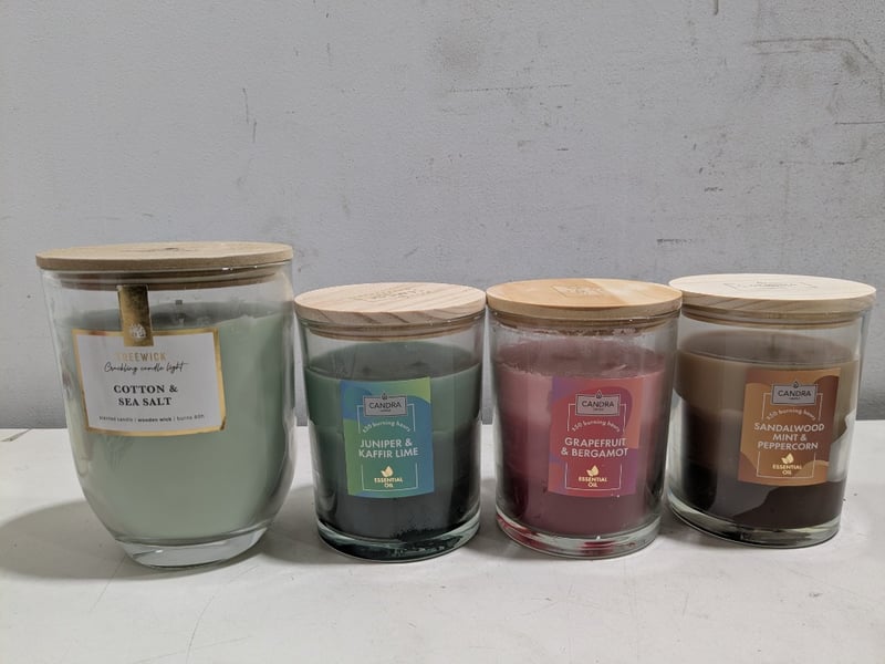 Collection of scented candles including juniper & kaffir lime, cotton sea salt and more...