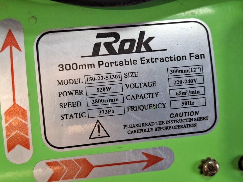Rok 300mm Portable Extraction Fan, Model 150-23-52307