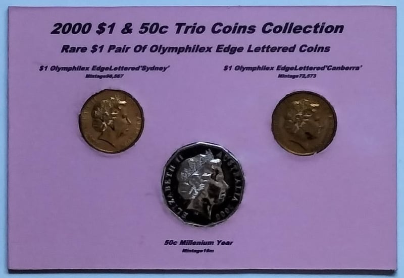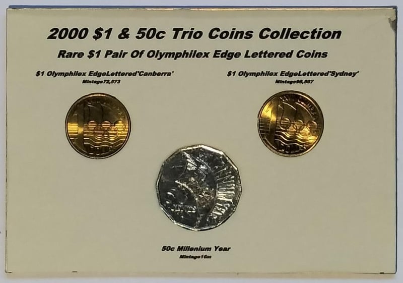 2000 TRIO $1 & 50C COLLECTION RARE $1 PAIR OF OLYMPHILEX EDGE LETTERED COINS Condition: UNCEx Mint Roll/Folder488537+4
