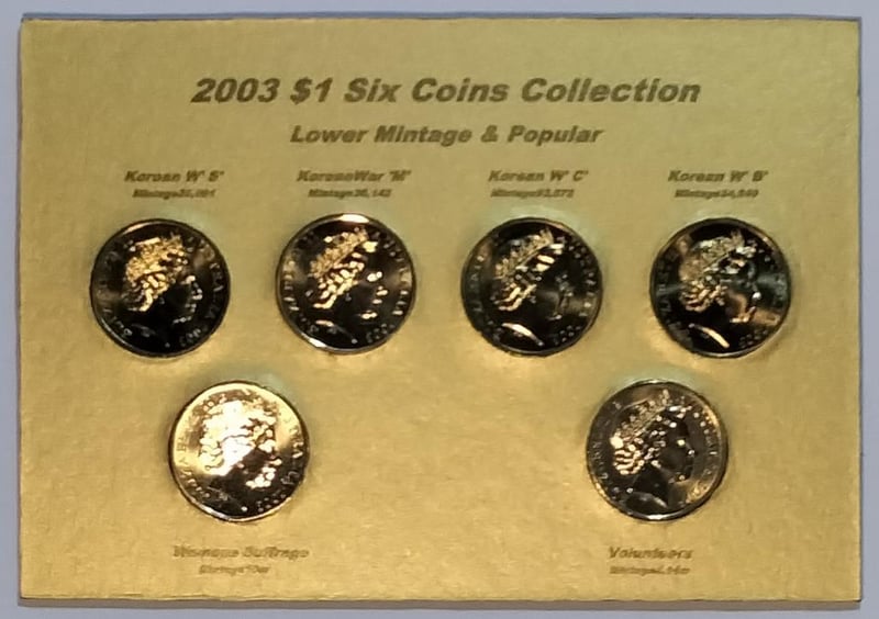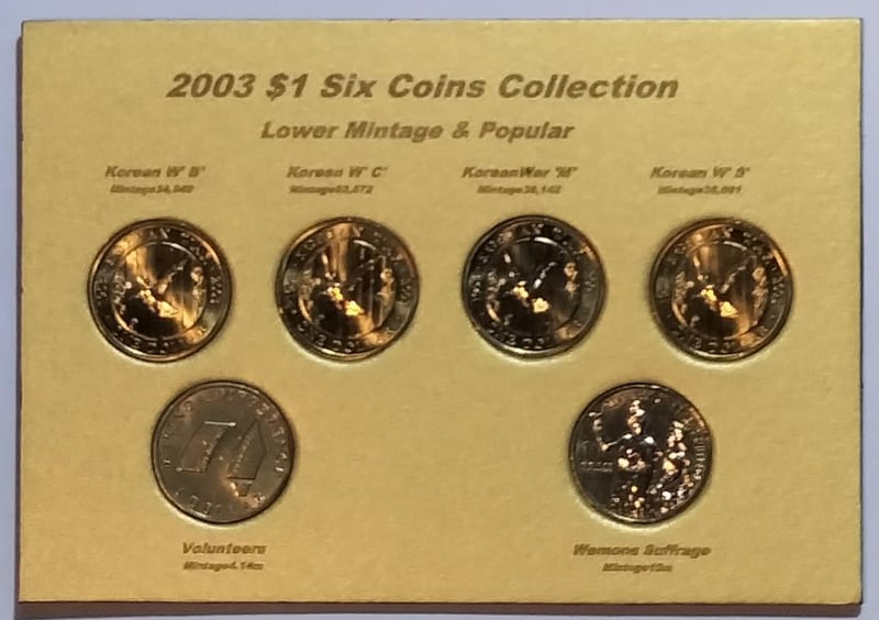 2003 SIX $1 COINS COLLECTION LOWER MINTAGE & POPULAR KOREAN WAR VOLUNTEERS & WEMONS SUFFRAGE