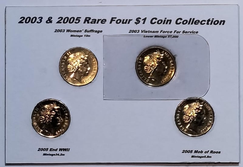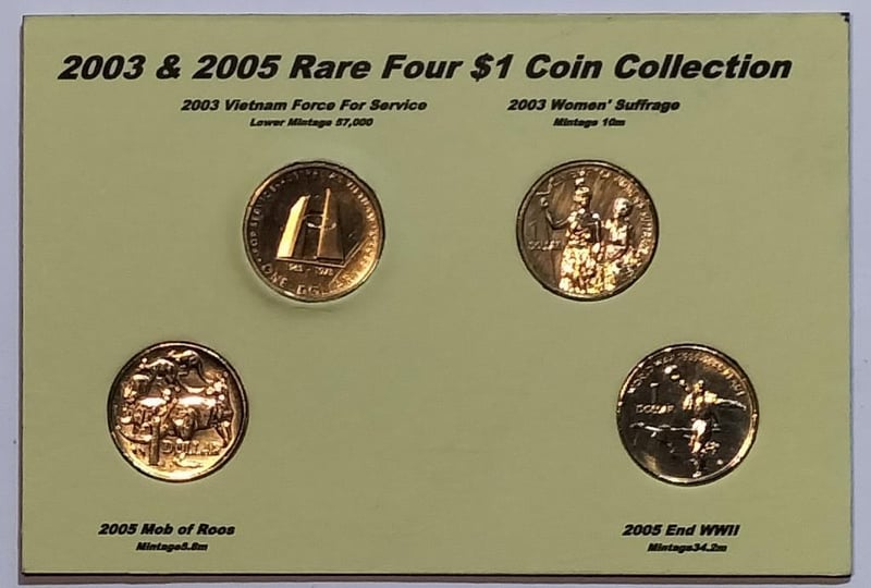 2003 & 2005 RARE FOUR $1 SET 2003 $1 VIETNAM FORCE FOR SERVICE & SUFFRAGE; 2005 &1 ROOS & END WWII Condition: UNCEx Mint Folder488537+10