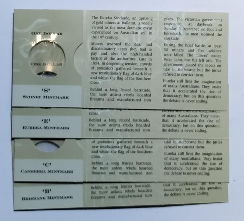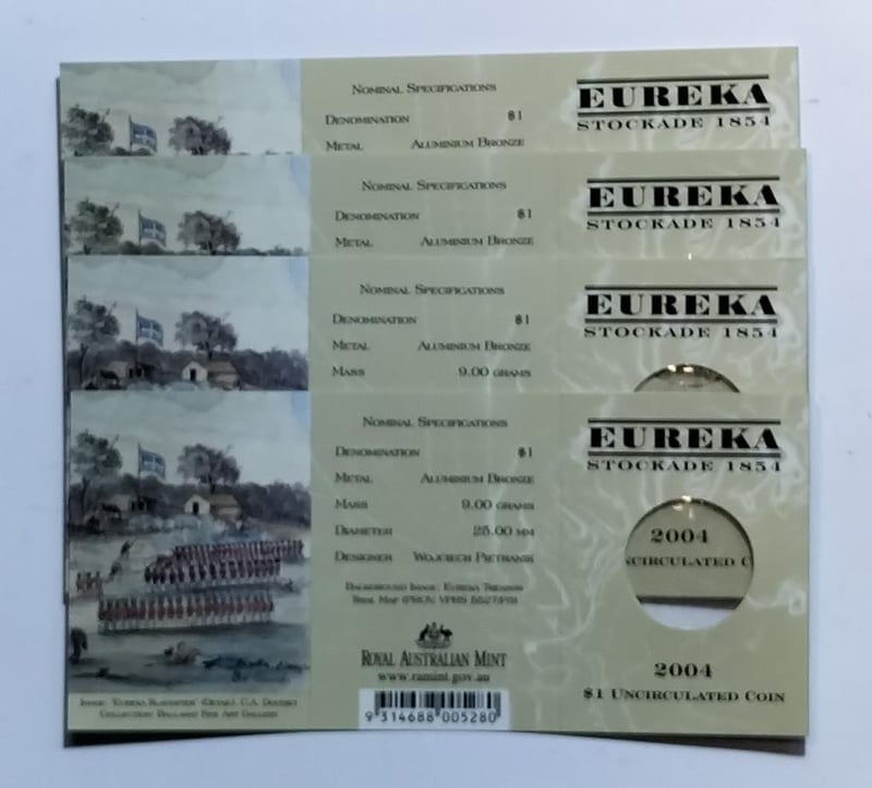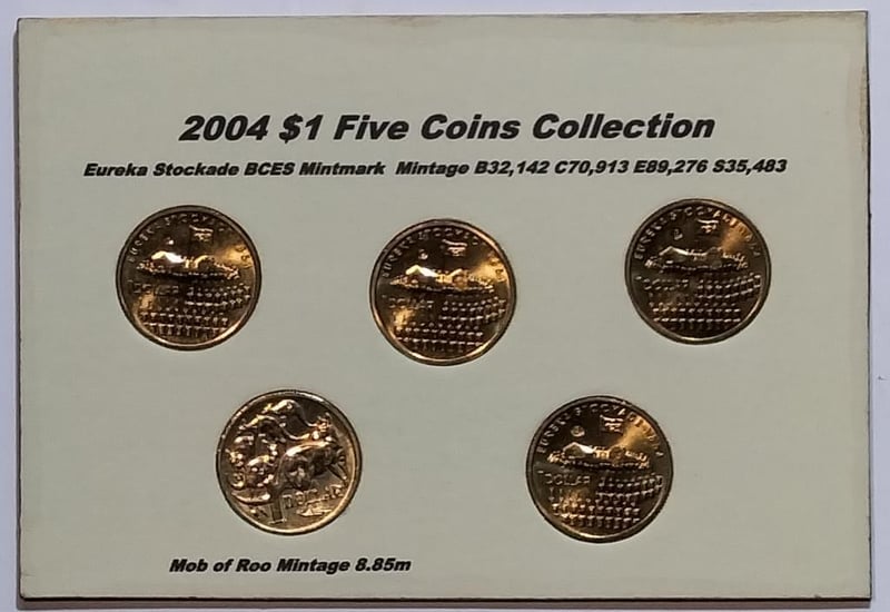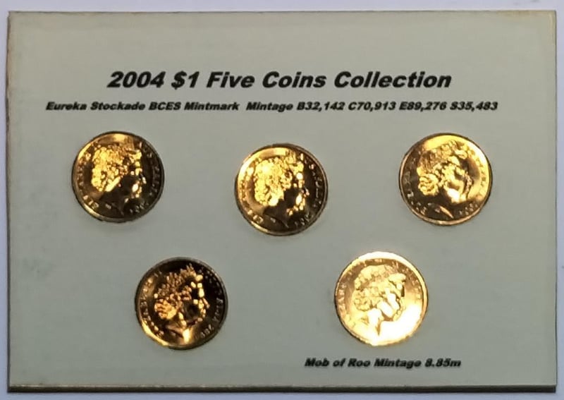 2004 FIVE $1 COINS COLLECTION EUREKA BCES MINTMARK & MOB OF ROOS Condition: UNCEx Mint Roll/Folder488537+14
