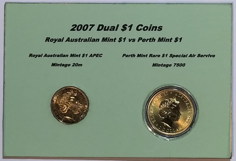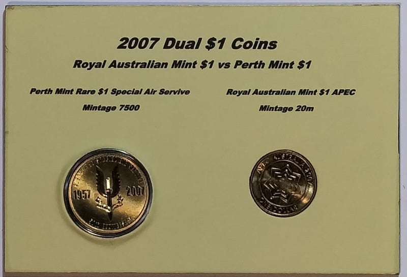 2007 DUAL $1 COINS ROYAL AUSTRALIAN MINT $1 VS PERTH MINT $1 Condition: UNCEx Pnc488537+21