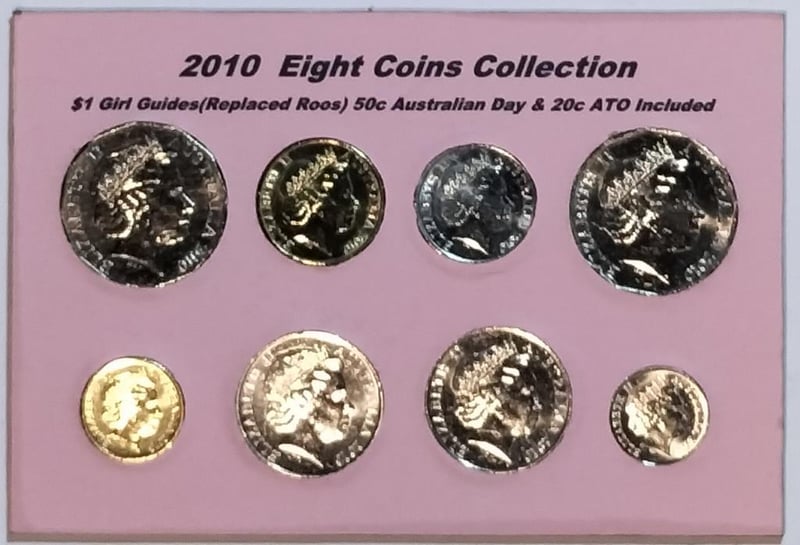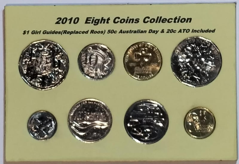 2010 EIGHT COINS COLLECTION $1 GIRL GUIDES(REPLACED ROOS) 50C AUSTRALIAN DAY & 20C ATO INCLUDED Condition: UNCEx Mint Roll/Bag488537+26