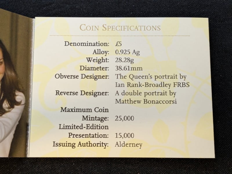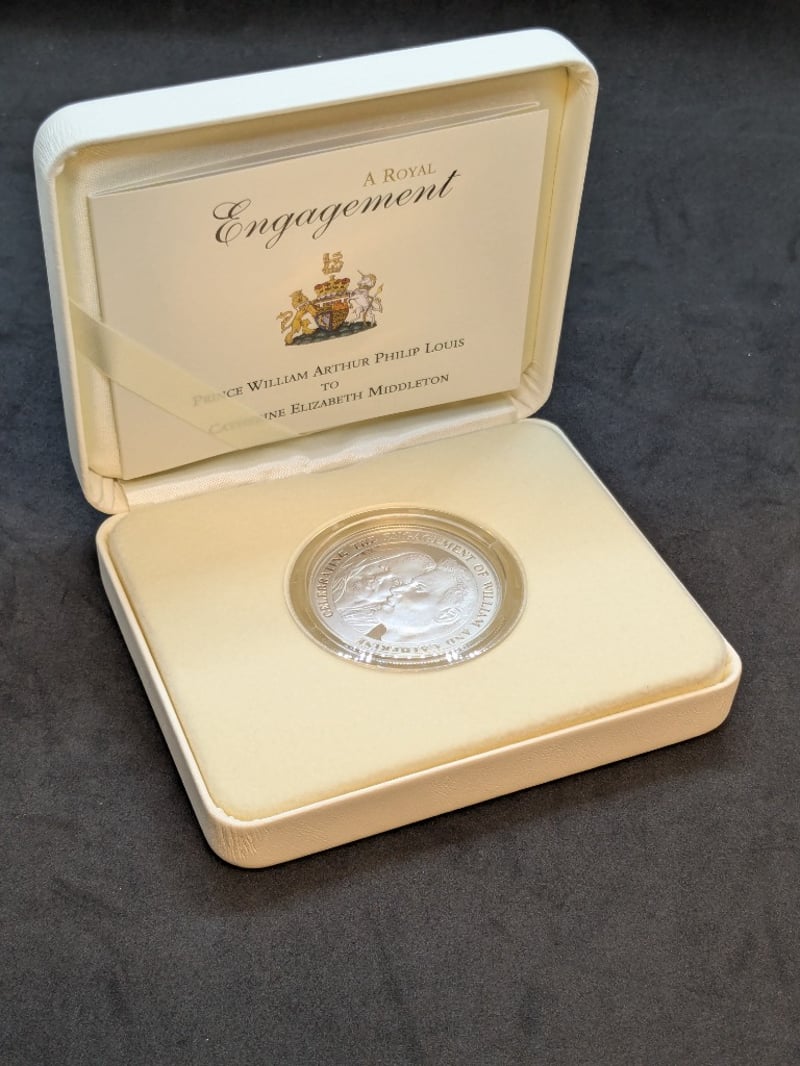 2010 - PRINCE WILLIAM AND CATHERINE MIDDLETON ROYAL ENGAGEMENT COMMEMORATIVE FIVE DOLLAR SILVER COINCondition: Proof585090+57