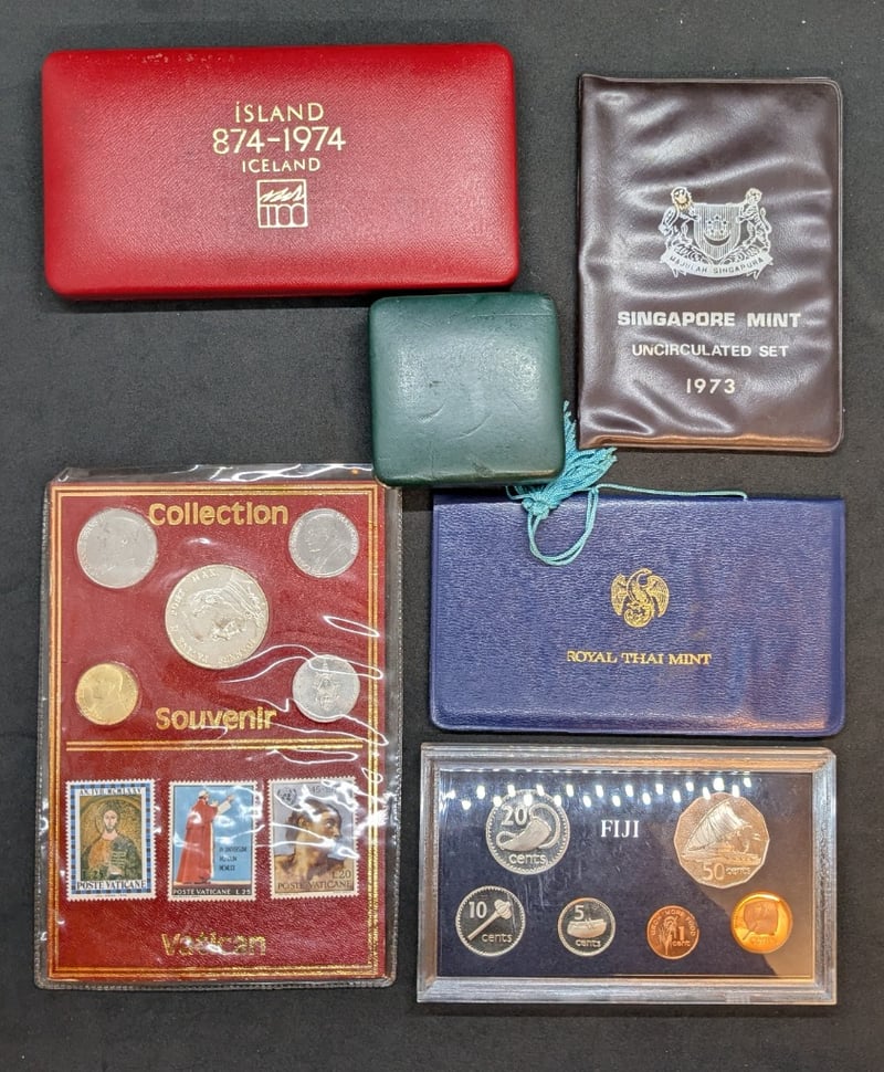 INTERNATIONAL MINT SETS COLLECTION 1973-1974 (ICELAND, SINGAPORE, THAILAND, VATICAN, FIJI, AUSTRALIA)A Distinguished Collection Of Uncirculated Numismatic Sets Spanning Multiple Nations And Mints, Circa 1973-1974.Condition: Unc585090+65