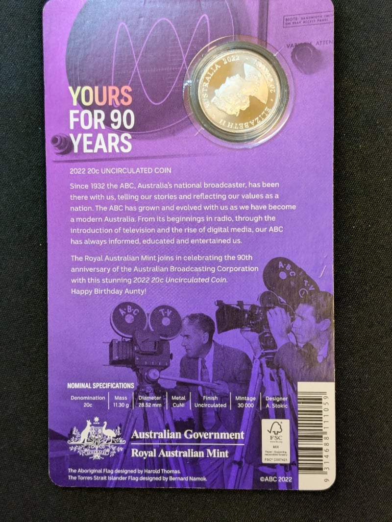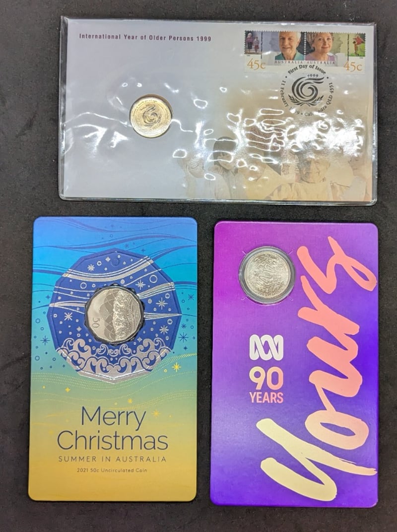 AUSTRALIAN COMMEMORATIVE COINS COLLECTION (1999-2022)Includes 2021 Royal Australian Mint Merry Christmas Fifty Cent Coin, 2022 Royal Australian Mint 90 Years Of Abc Broadcast, And 1999 International Year Of Older Persons CoinCondition: Unc585090+77