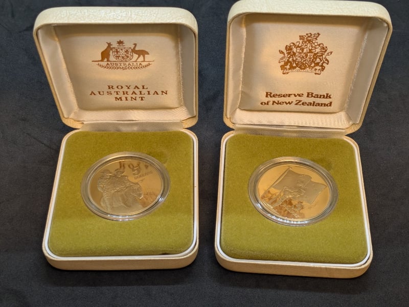 1990 ANZAC 75TH ANNIVERSARY COMMEMORATIVE COIN SETA Significant Two-Coin Commemorative Set Issued Jointly By The Royal Australian Mint And Reserve Bank Of New Zealand To Mark The 75Th Anniversary Of Anzac Day (25Th April, 1990).Condition: Proof585090+88