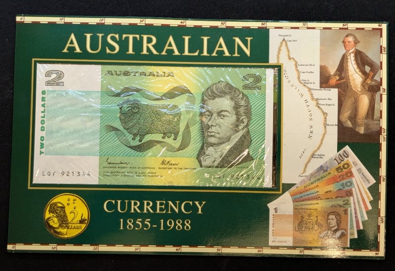 AUSTRALIAN CURRENCY COLLECTION 1855-2016Includes 1988 Australian Two Dollar Coin And Two Dollar Bank Note, 2016 Australian Introduction To Decimal Currency One Dollar Coin, 2019 Australian Eureka Stockade Commemorative CoinCondition: Unc585090+98