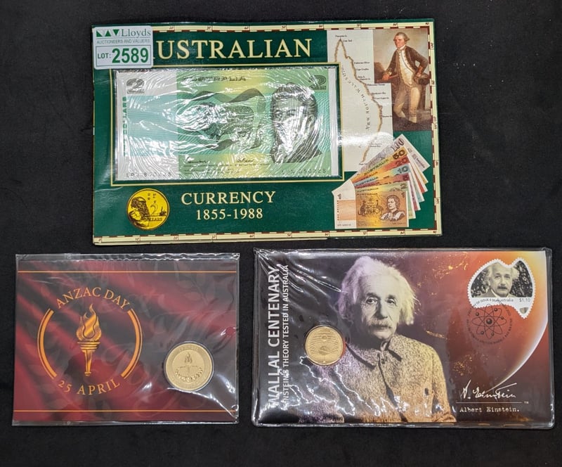 AUSTRALIAN NUMISMATIC COLLECTION - CURRENCY 1855-1988, EINSTEIN CENTENARY, AND ANZAC DAY COMMEMORATIVESA Comprehensive Australian Numismatic Collection Featuring Significant Historical And Commemorative Pieces.Condition: Unc585090+102