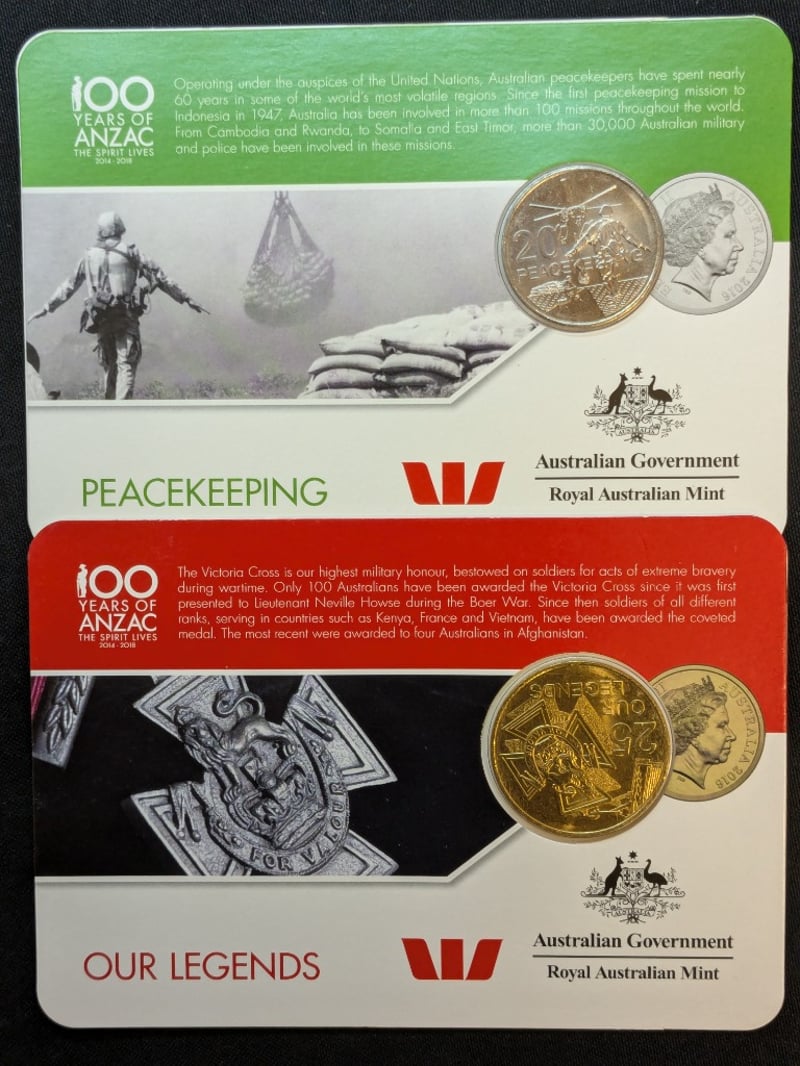 ROYAL AUSTRALIAN MINT 100 YEARS OF ANZAC COMMEMORATIVE COIN COLLECTION 2014-2018585090+103