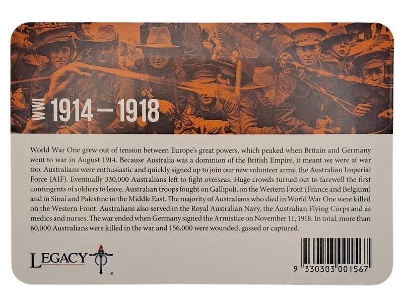 2015 'WWI 1914-1918' TWENTY CENT COIN AND OFFICIAL COIN COLLECTION FOLDERCondition: Vf585090+114