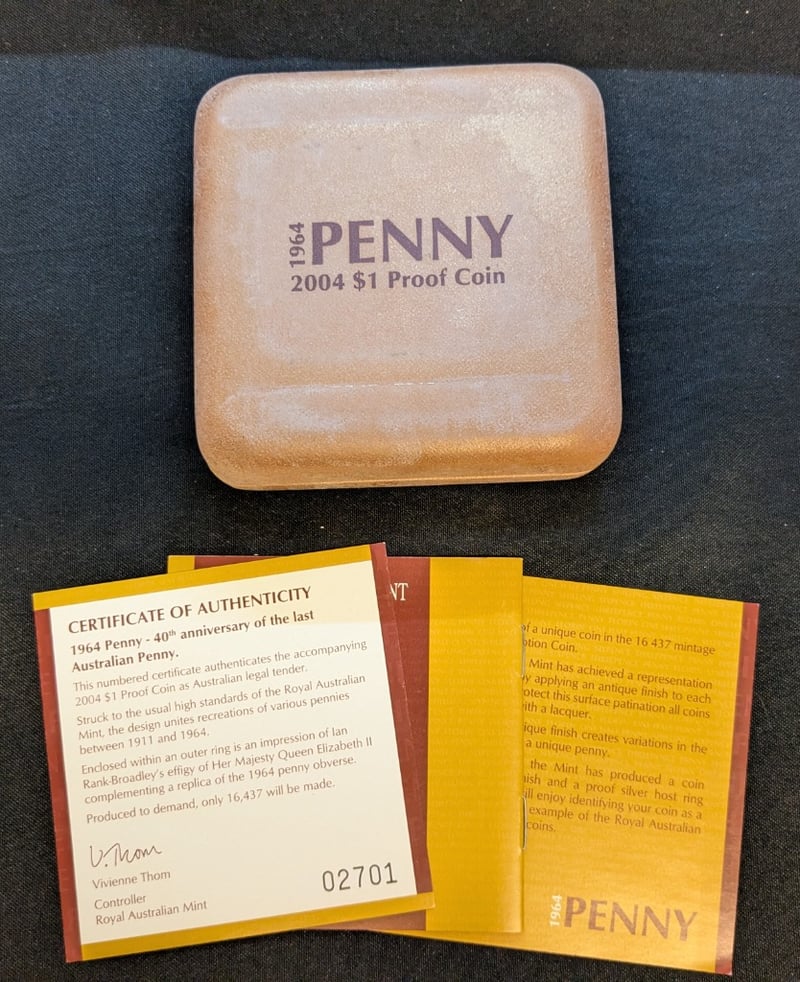 1964 AUSTRALIAN PENNY $1 PROOF COIN - 40TH ANNIVERSARY COMMEMORATIVECondition: AuncProvenance: Royal Australian Mint, Certificate Of Authenticity #02701585090+117