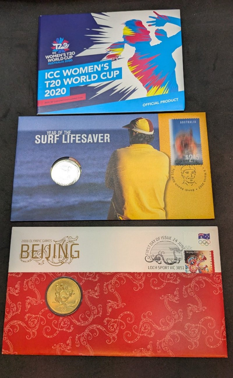 2008 BEIJING OLYMPIC GAMES GOLD COIN & 2020 ICC WOMEN'S T20 WORLD CUP COINS WITH FIRST DAY COVERSCondition: Unc585090+131