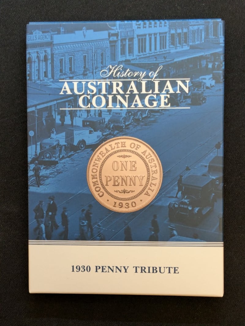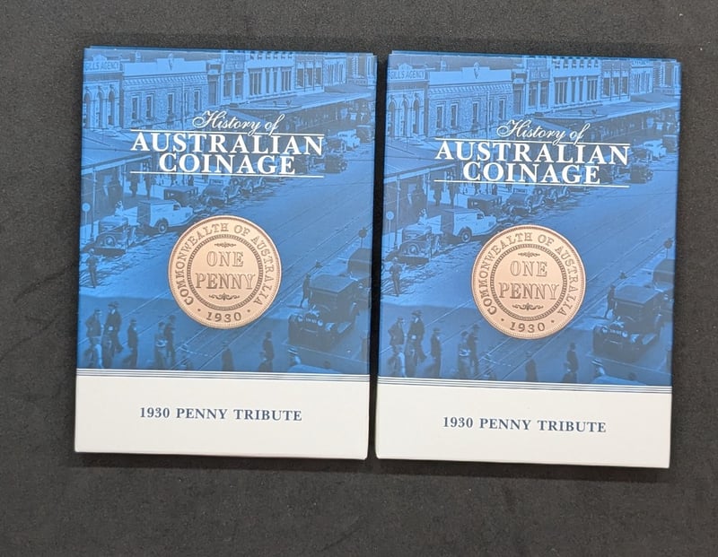 TWO 1930 PENNY TRIBUTE - HISTORY OF AUSTRALIAN COINAGE COMMEMORATIVE COLLECTIONCondition: Unc585090+136