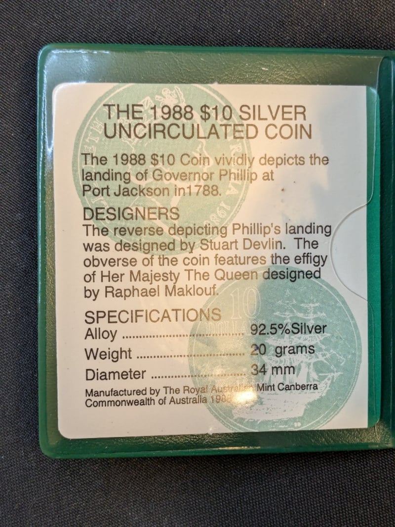 1988 ROYAL AUSTRALIAN MINT $10 SILVER UNCIRCULATED COIN WITH JOHN WEST COMMEMORATIVE COVERSCondition: UncProvenance: Royal Australian Mint / John West Commemorative Issue585090+139