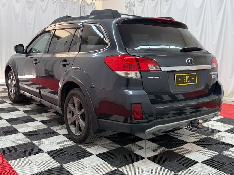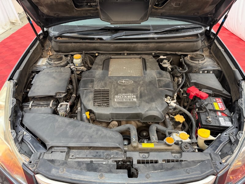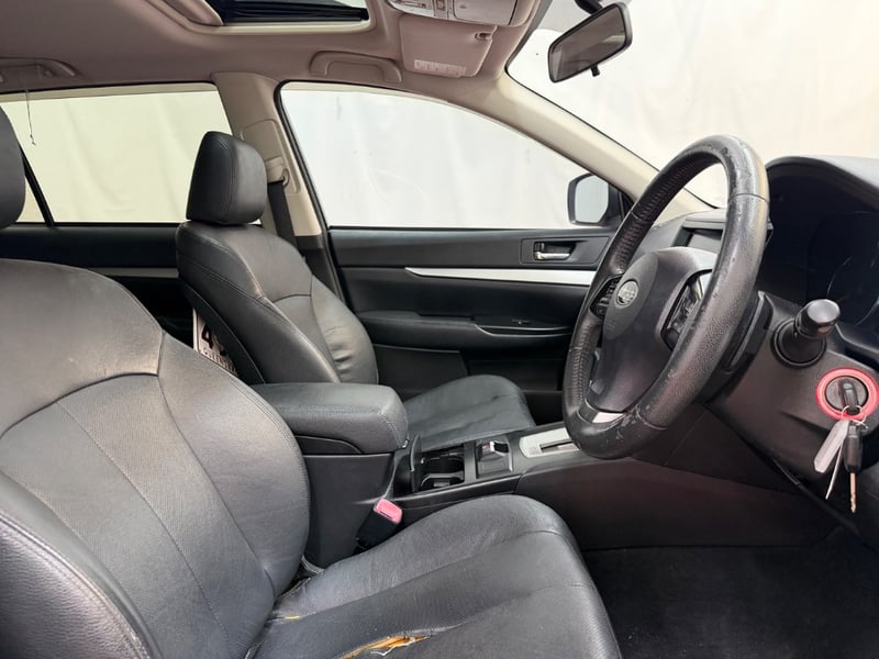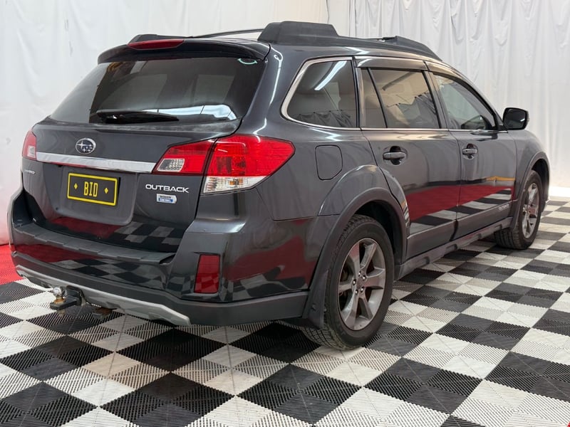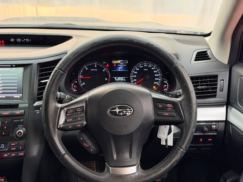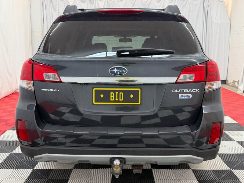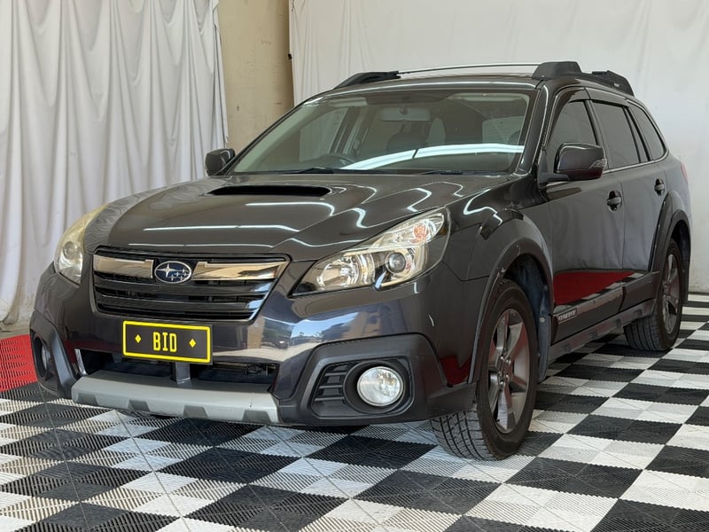2014 Subaru Outback BR 2.0D Premium. This five-door, five-seat SUV features all-wheel drive capability and is powered by a 2-litre horizontal four-cylinder diesel engine paired with a continuously variable transmission for smooth, efficient power delivery. The vehicle displays 169,725 kilometres on the odometer and is presented in blue/grey. Built to Subaru's renowned standards of reliability and performance, this Outback combines practical family transport with genuine off-road credentials. Seat upholstery wear and tears and minor scuffing, steering wheel surface wear, minor paint scuffs, dents and scratches to bonnet and body panels, roof rack scuff marks, minor dent to rear quarter panel, wiper blade wear, exhaust outlet corrosion, minor stone chips. Inspection recommended.