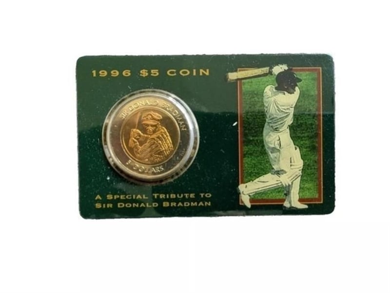 BRADMAN 5 DOLLAR BI METAL COIN ON CARD OF ISSUE 1996 ISSUED BY RAM 294153+23