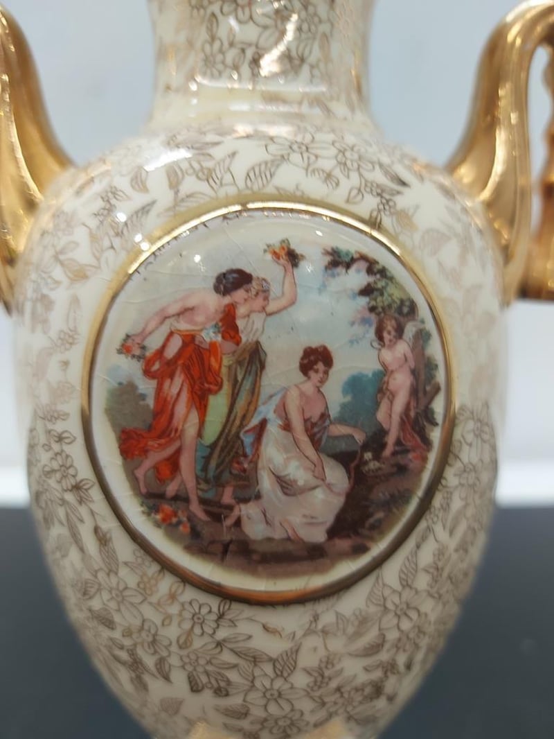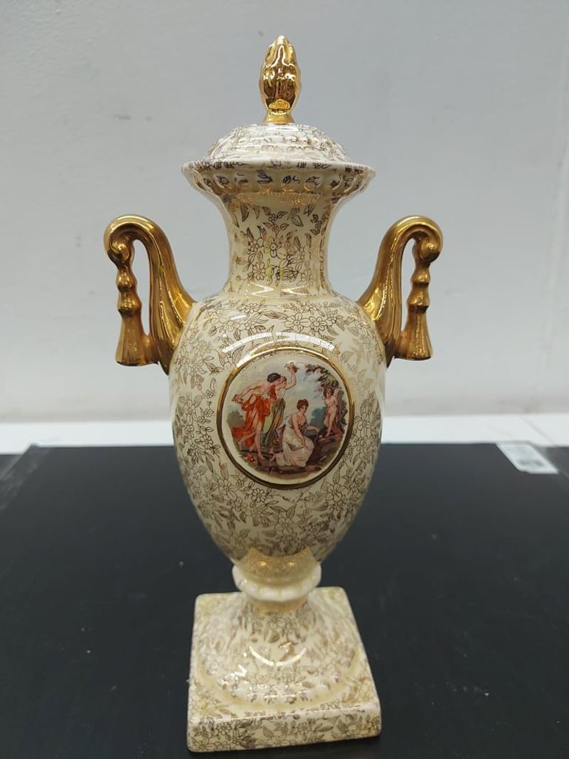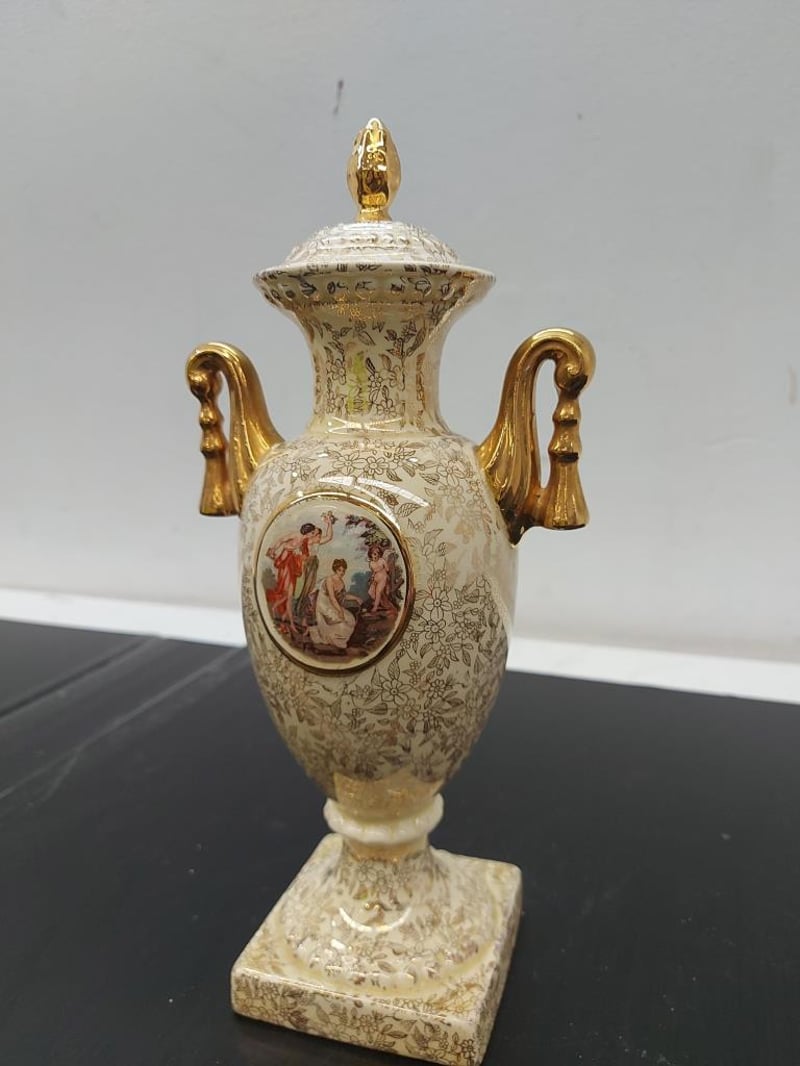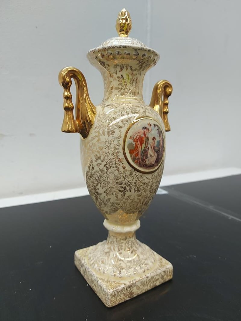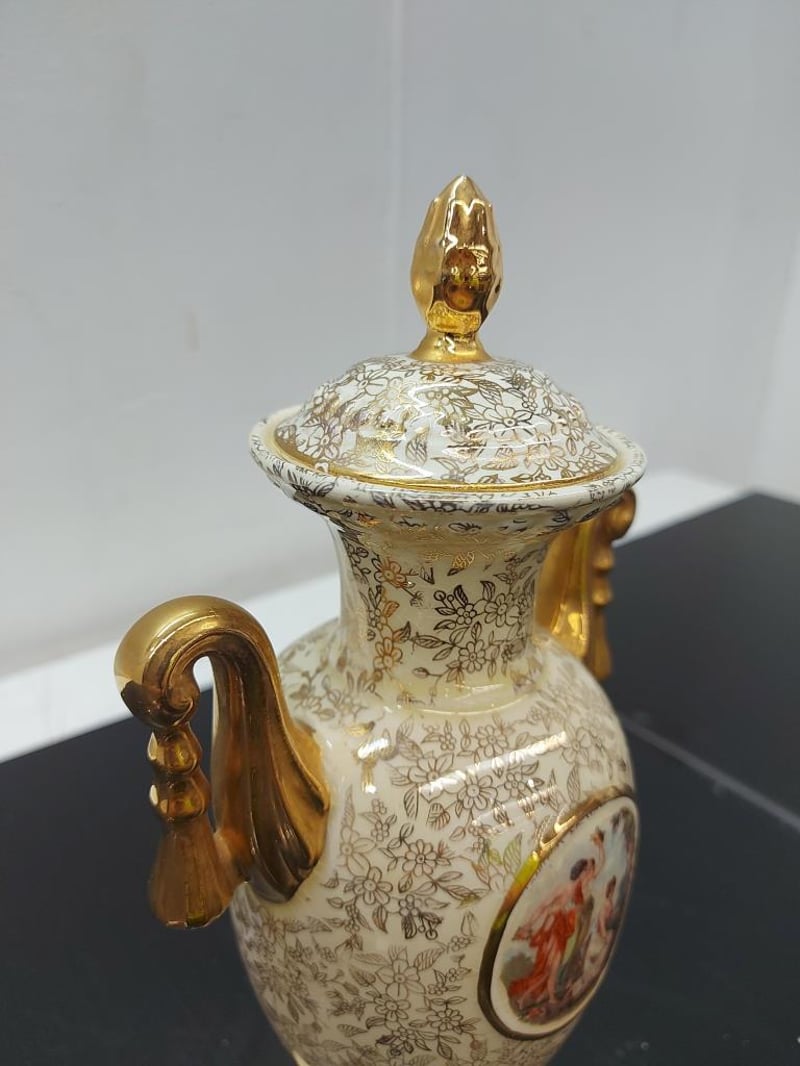 PORCELAIN URN VASE WITH LID, EMPIRE ENGLAND, GOLD CHINTZ, 1179Item Size: Height: 31cm, Width: 25cm, Depth: 30cm, Weight: 2KgCondition: Good - Refer To ImagesTOORMINA548655+5
