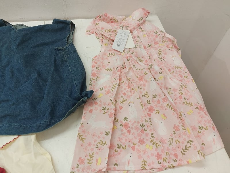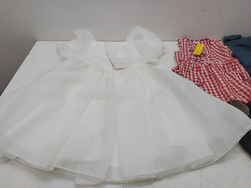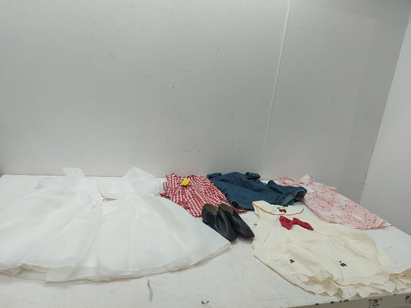 Assorted Kids Clothes, White Dress MIK & ME, Dress With Bunnys, Shoes, And More, Quantity 6Sold As Lot