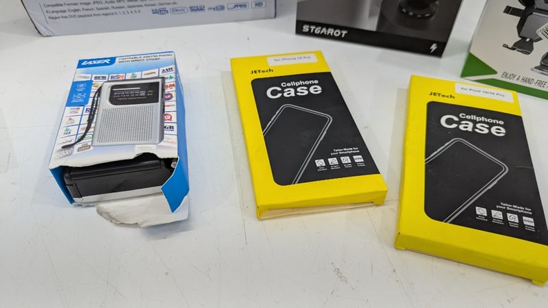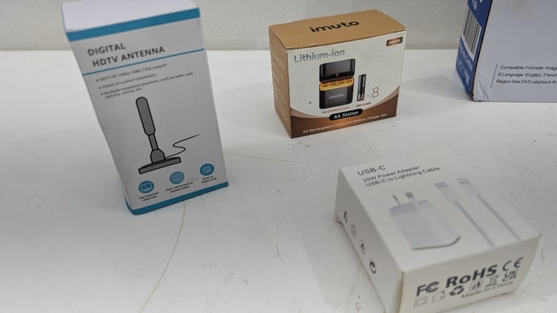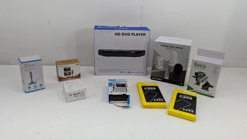 Mixed Bundle, Including HD DVD Player,bDigital HDTV Antenna, Phone Cases andore, Quantity 9Sold As Lot