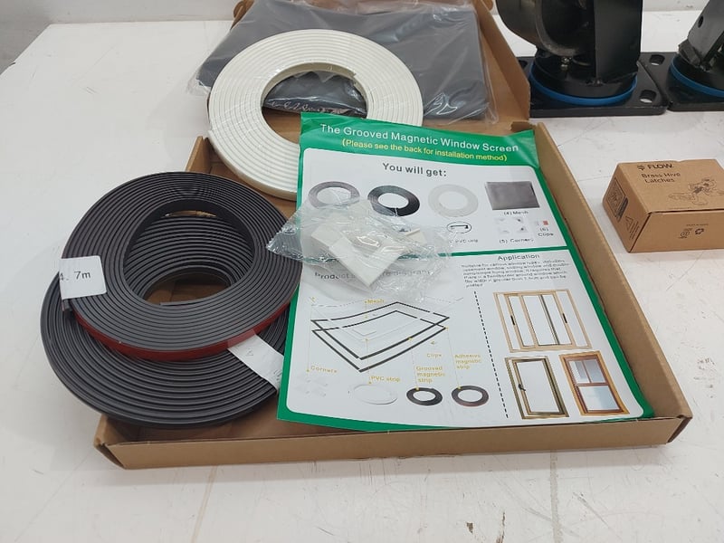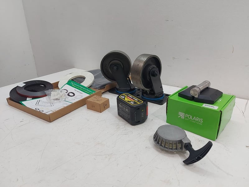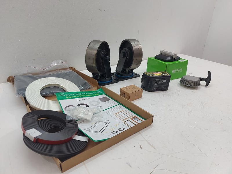 Assorted Lot Includes Heavey-Duty Swivel Wheels, Power Tool Batterie, Soft Close Hinge ×2, And More, Quantity 7Sold As Lot