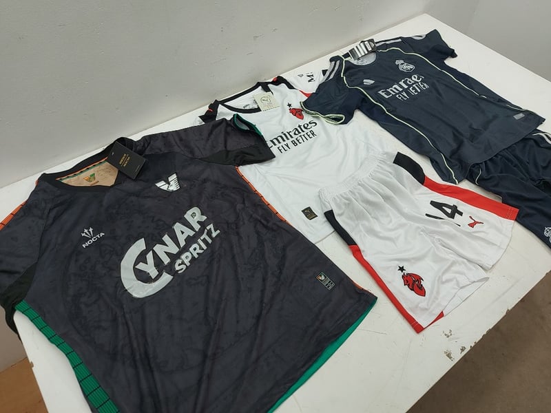 Jersey's, Kids Emirates Fly Better Size Us 28 Slim Fit Coupe Slim Shirt With Shorts, Kids Emirates Fly Better Shirt Wiht Shorts Modric 14 Size US22, Cynar Spritz Venezia FC Baron 9, Quantity 3