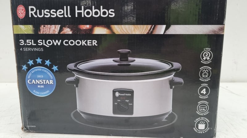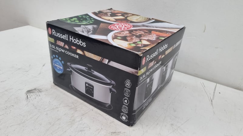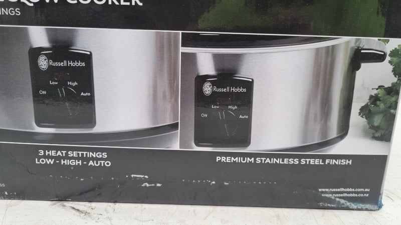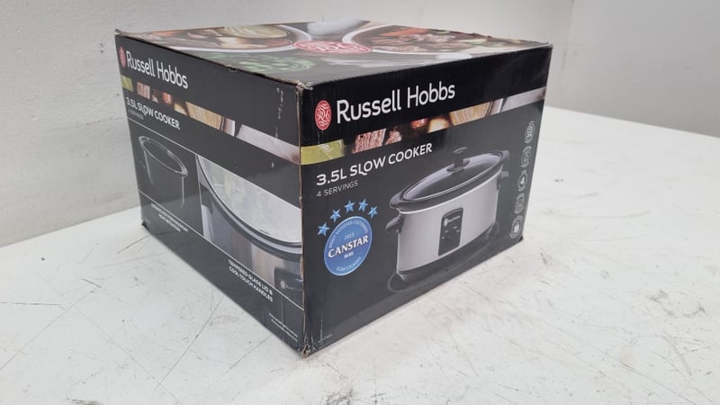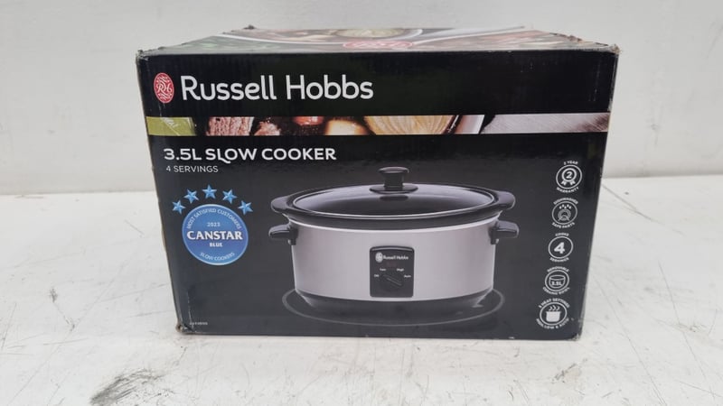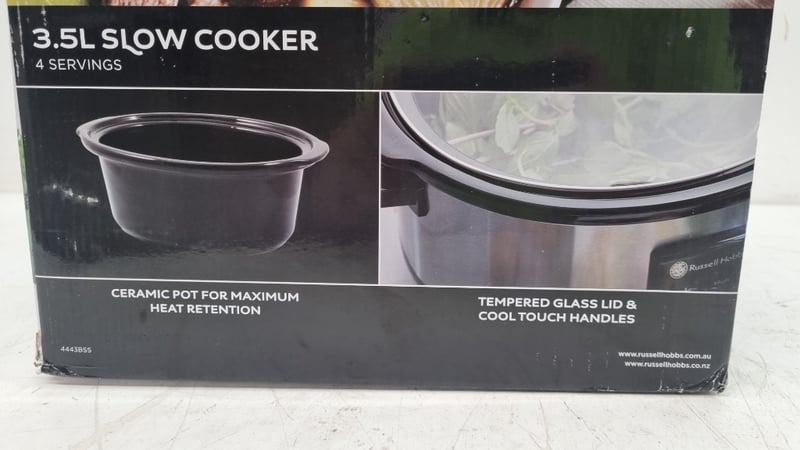 Slow Cooker, Stainless Steel Russel Hobbs, 3.5L Ceramic Bowl 3 heat SettingsSold as lot