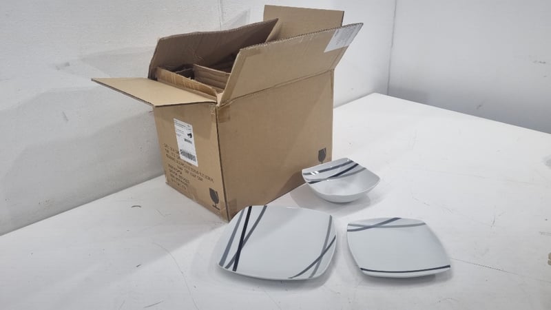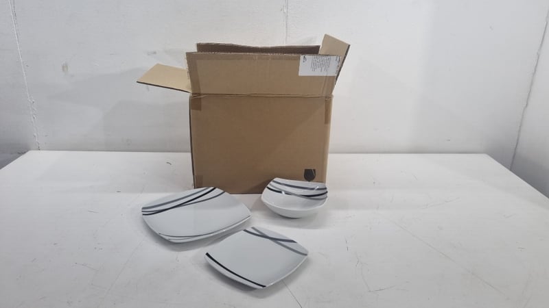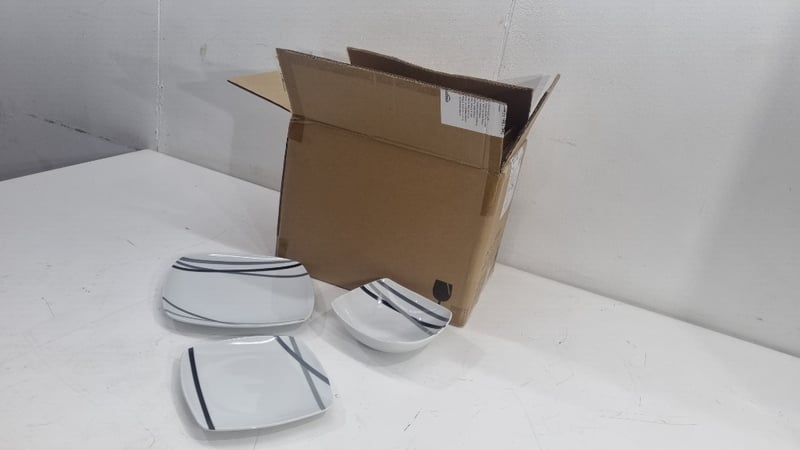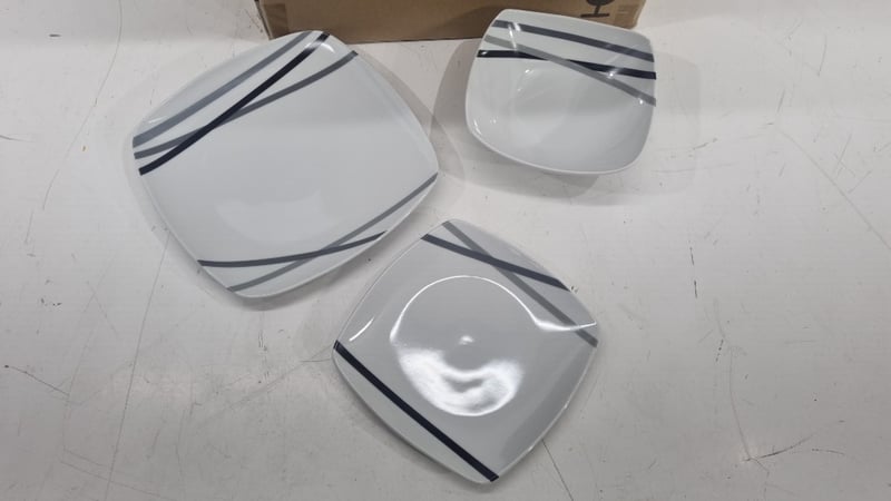 Rounded Square 18piece Dinnerware Set With Decorative Stipes, Includes aside Plates, Plates And Bowls,