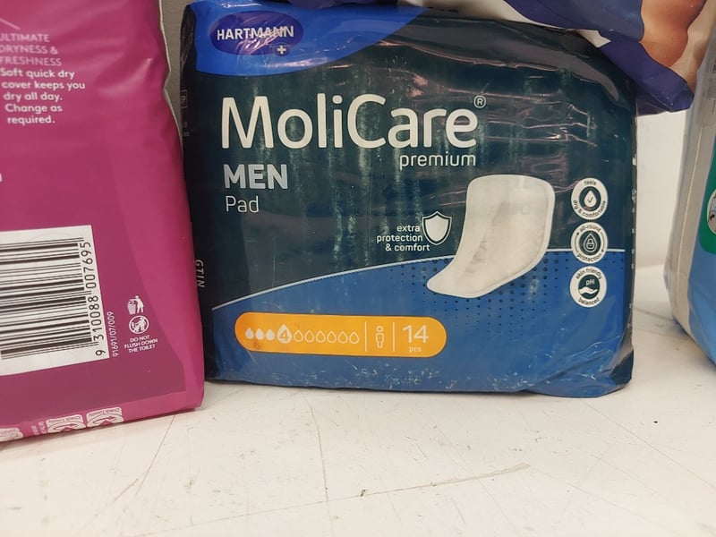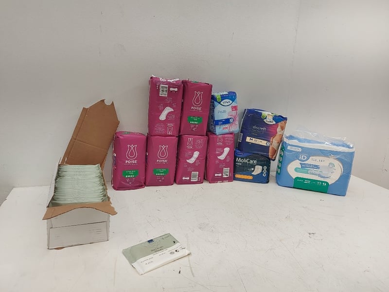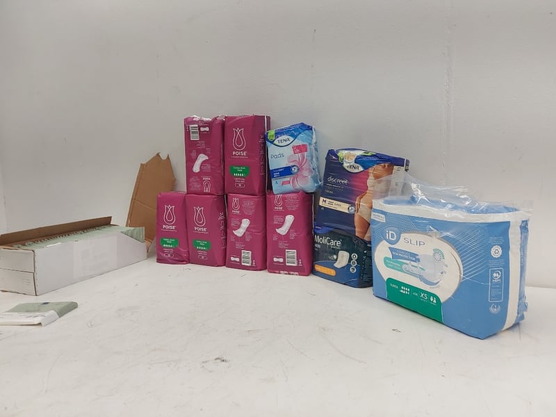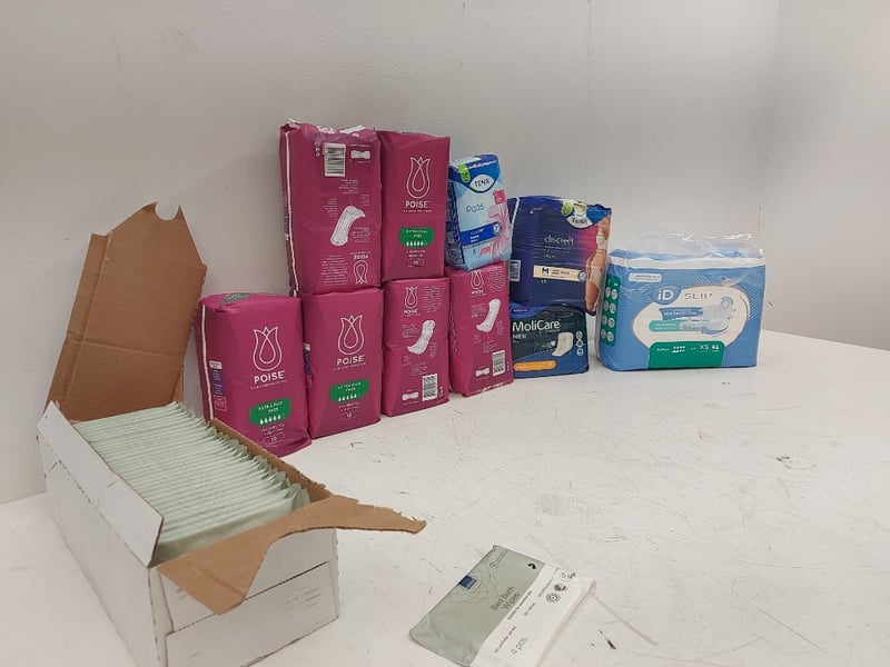 Extra Plus Pads Poise, Bed Bath Wipes, Pads Extra Long Tena, HIGH Waist Underwear Super Size M, Men Pad MoliCare, Super Size Xs ID Slip, Quantity 11Sold As Lot