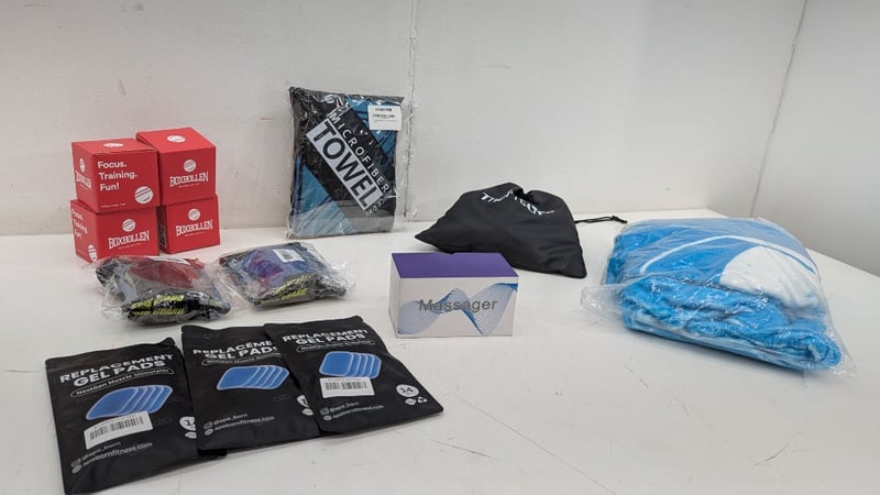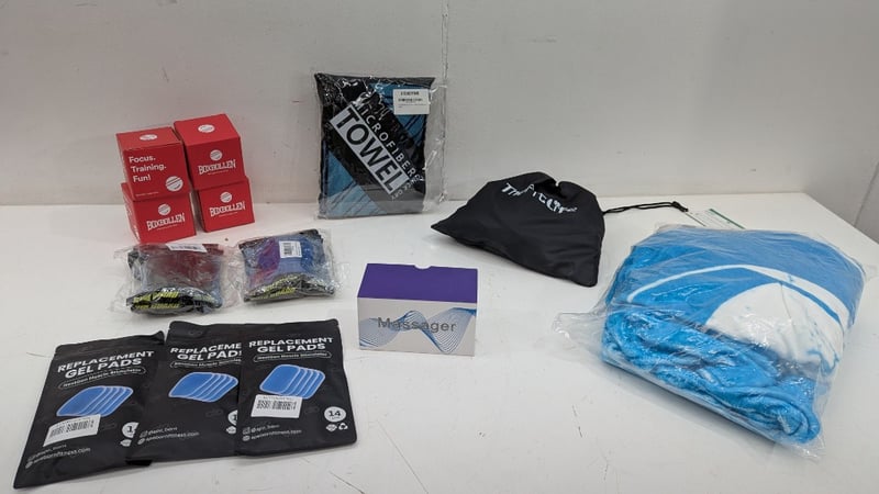 Sports Pack, Includes Microfibre and Hoodie Towels, Massager, Sports Bands, Shin Pads and More, Quantity Per LotSold As Lot