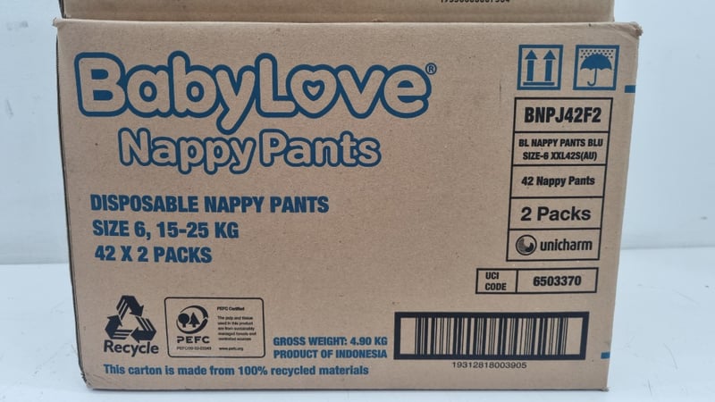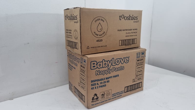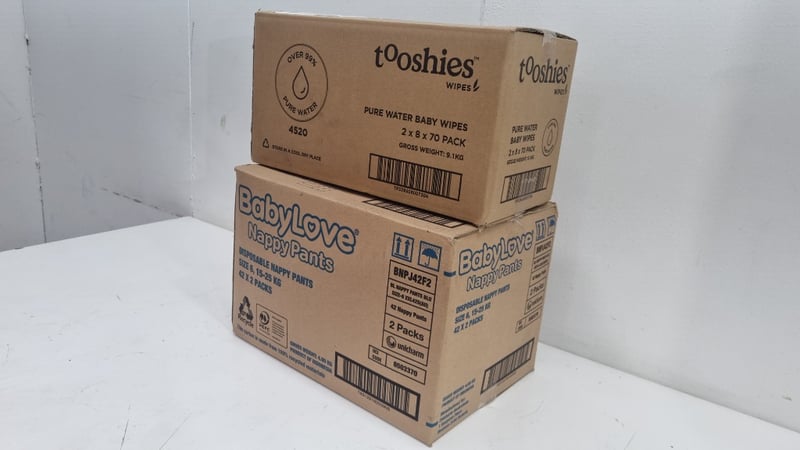 Nappy And Wipes Lot, Includes Bulk Tooshies Wipes, and 42x2 Packs of Baby Love Disposable Nappy Pants Size 6 15-25kg