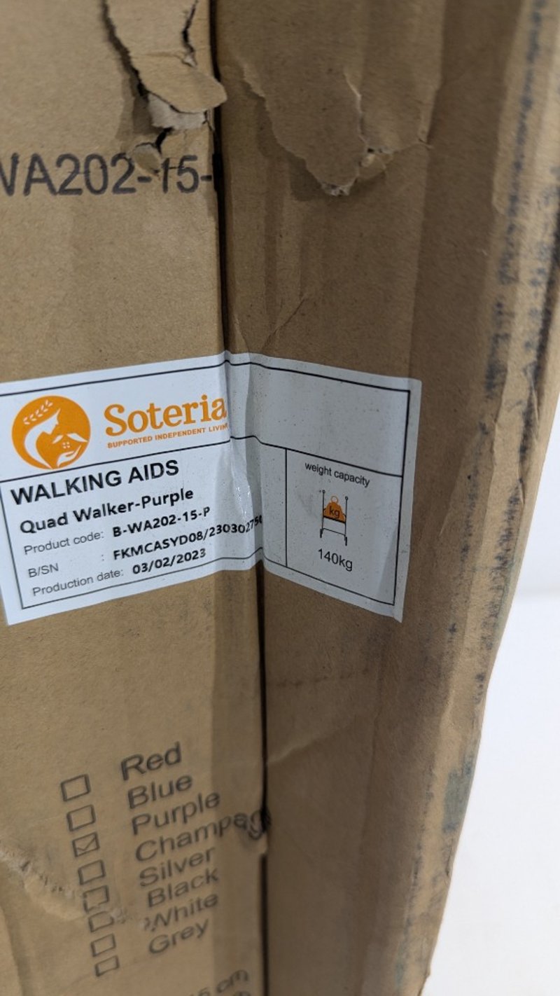Quad Walker, Osteria Walking Aids, Code: B-WA202-16-P, Weight Capacity 140 kg, Colour Purple, Wheel Size 15cm
