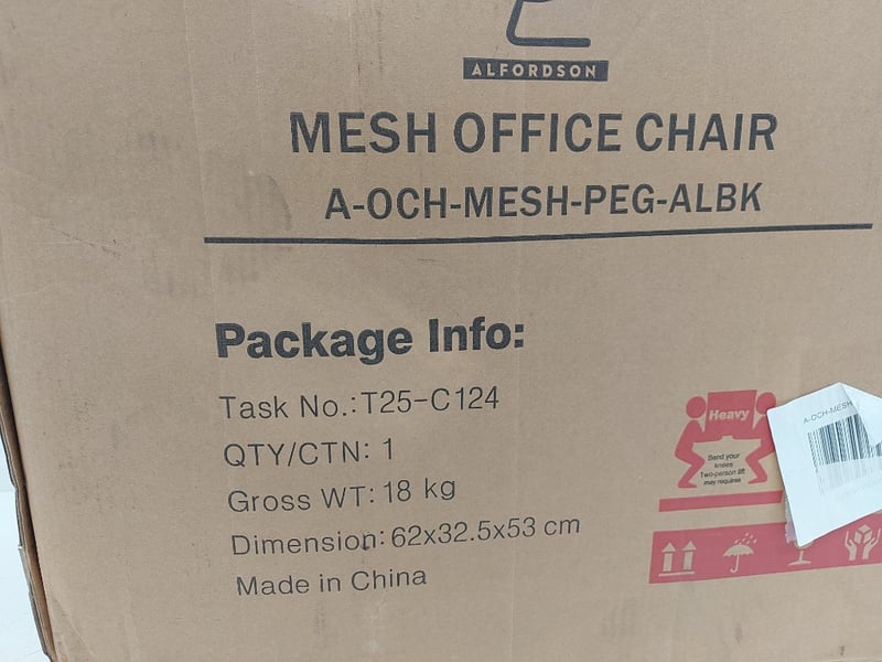 Mesh Office Chair, Alfordson, Model A-och-mesg-peg-albk, New In Box