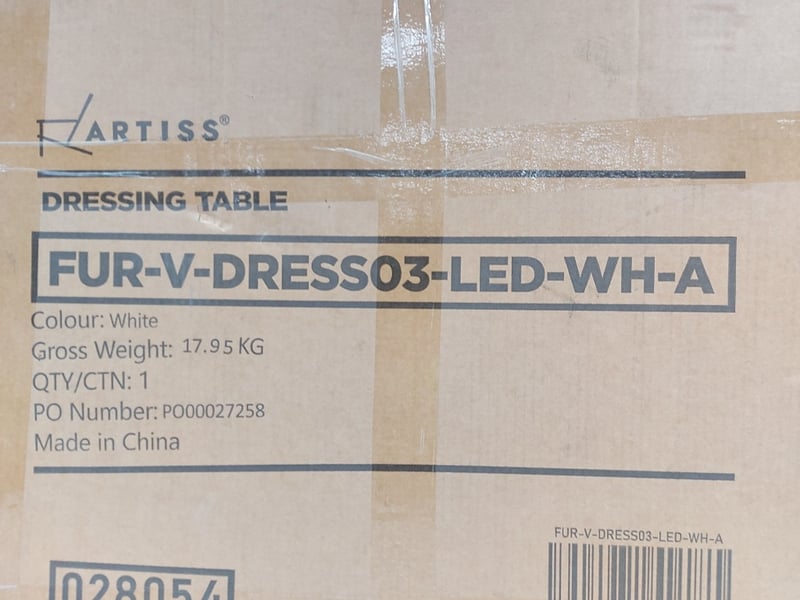 Dressing Table, Artiss, Model FUR-V-FRESSO3-LED-WH-A, Colour White, New In Box
