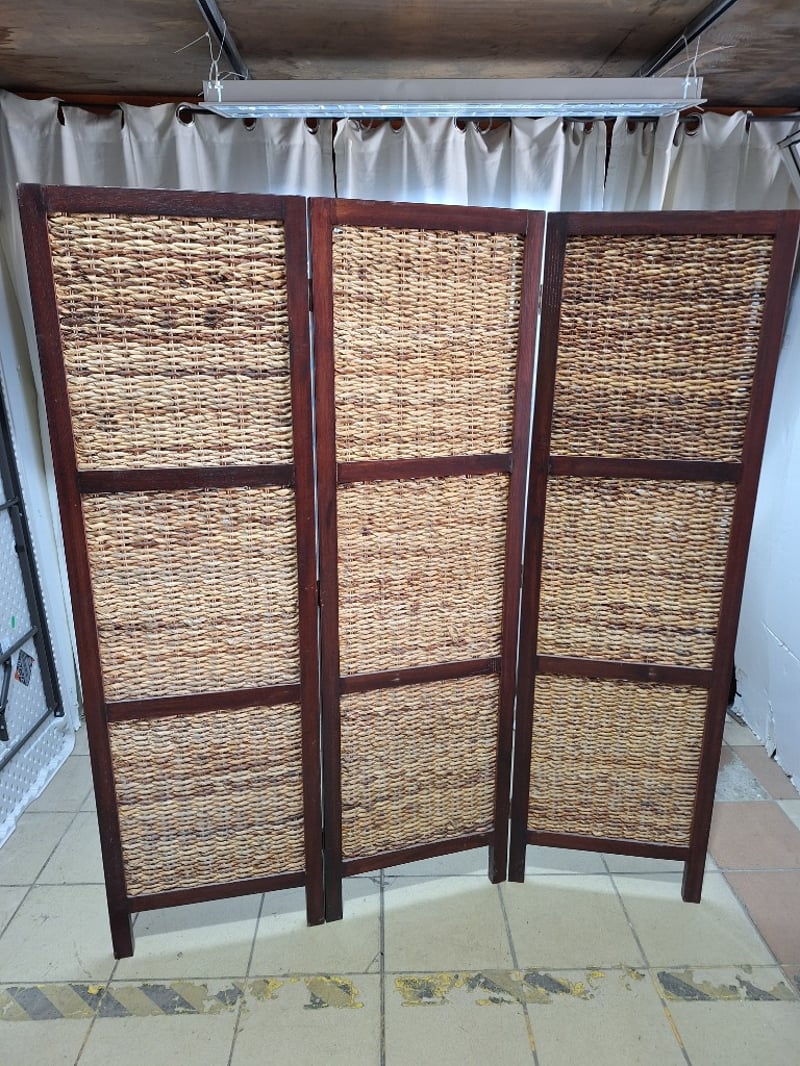 Foldable Room Divider, Timber & Rattan Style, Natural Finish