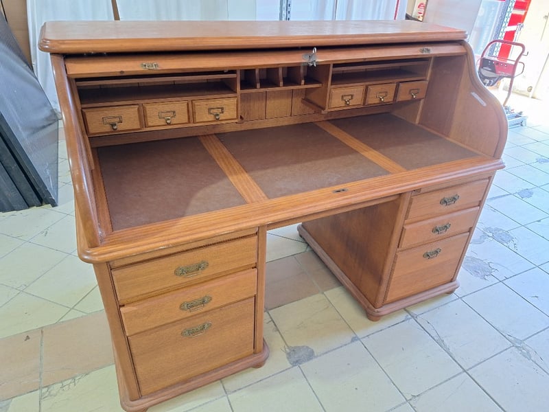 Writers Bureau With Drawers, Key Included, Timber, Natural Finish