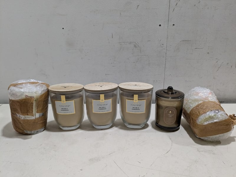 Collection of scented candles including musk oakmoss, Almond silk and more...