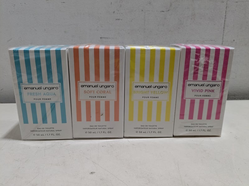 Collection of Emanuel Ungaro Eau de toilette including Fresh Aqua, Vivid Pink and more... Sold as a lot Note: Signs of wear and tear