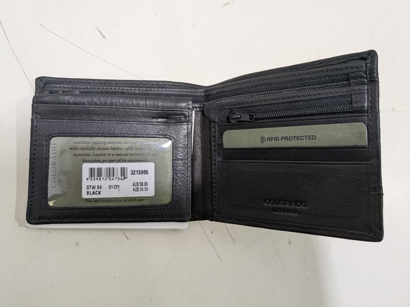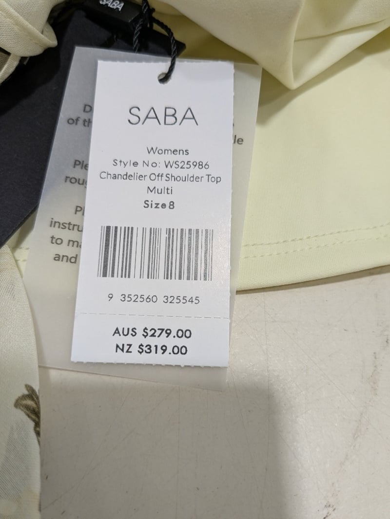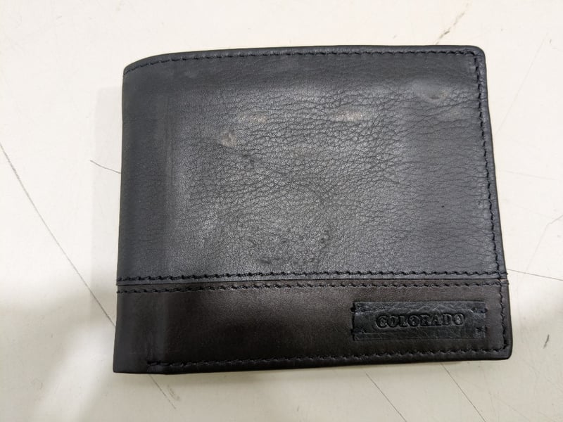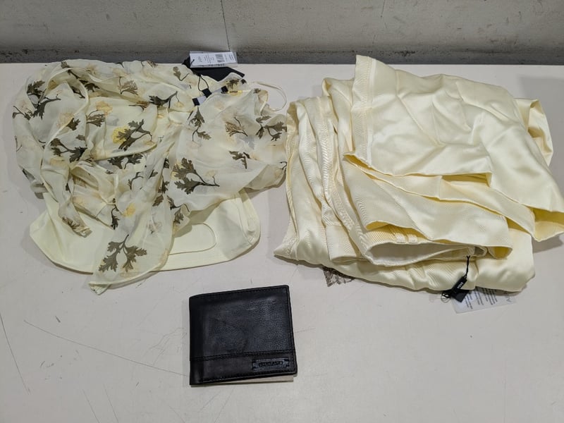 Assorted items including SABA clothing top and long pant size 8 and Colorado wallet.