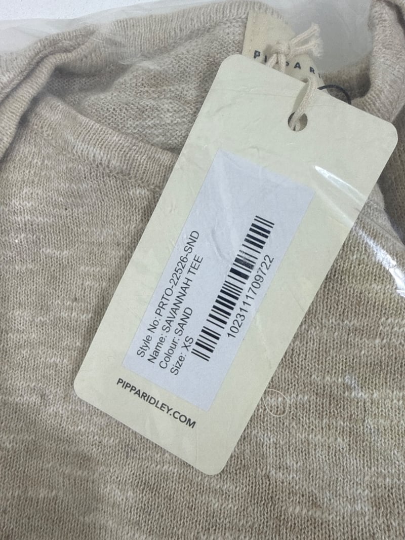 RRP: $129, Savannah Tee, Pippa Ridley, Size: XS, Colour: Sand