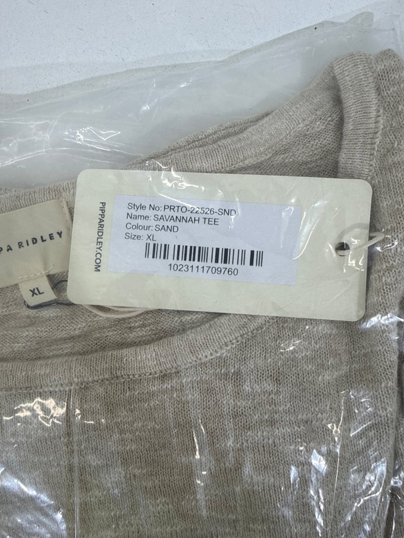 RRP: $129, Savannah Tee, Pippa Ridley, Size: XL, Colour: Sand