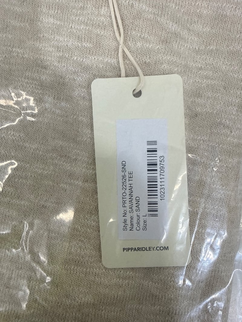 RRP: $129, Savannah Tee, Pippa Ridley, Size: L, Colour: Sand