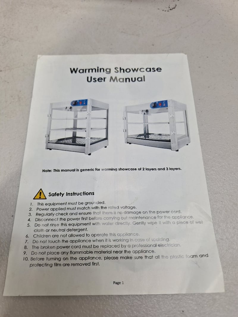 Food Warmer Display Case Dimensions H:49cm W:51cm D:52cm