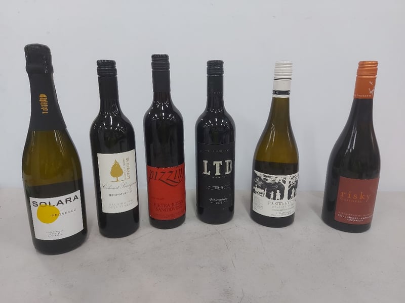 Mixed wine, includes Prosecco, merlot, Shiraz and more, 750ml bottles, x6 bottles