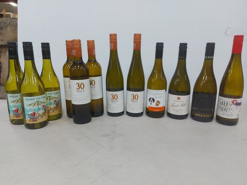 Mixed wine, includes Chardonnay, Riesling, pinot gris and more, 750ml bottles, x12 bottles