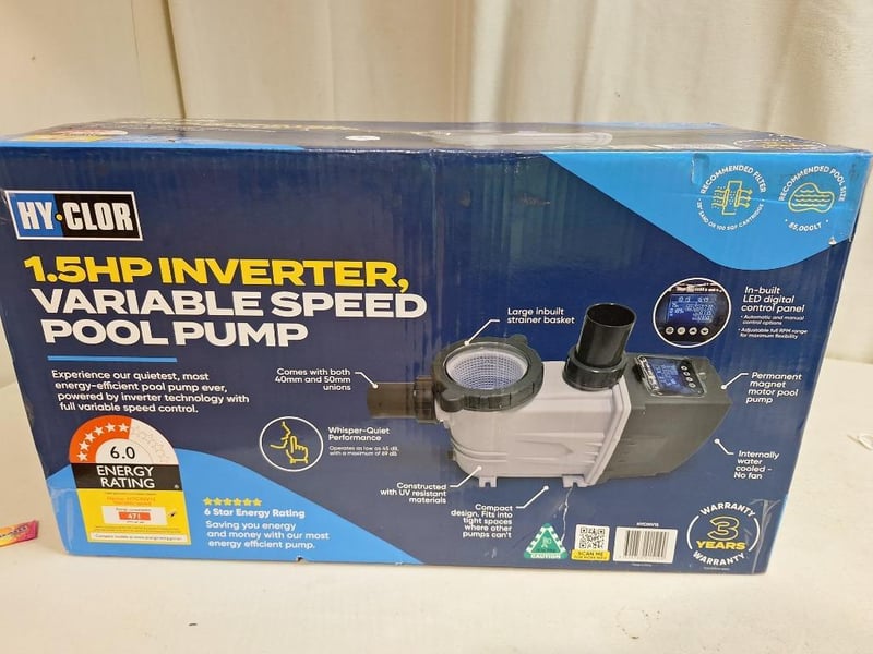HY.CLOR 1.5HP inverter variable speed pool pump, 6.0 energy rating, RRP$1999.00, NEW factory sealed in box